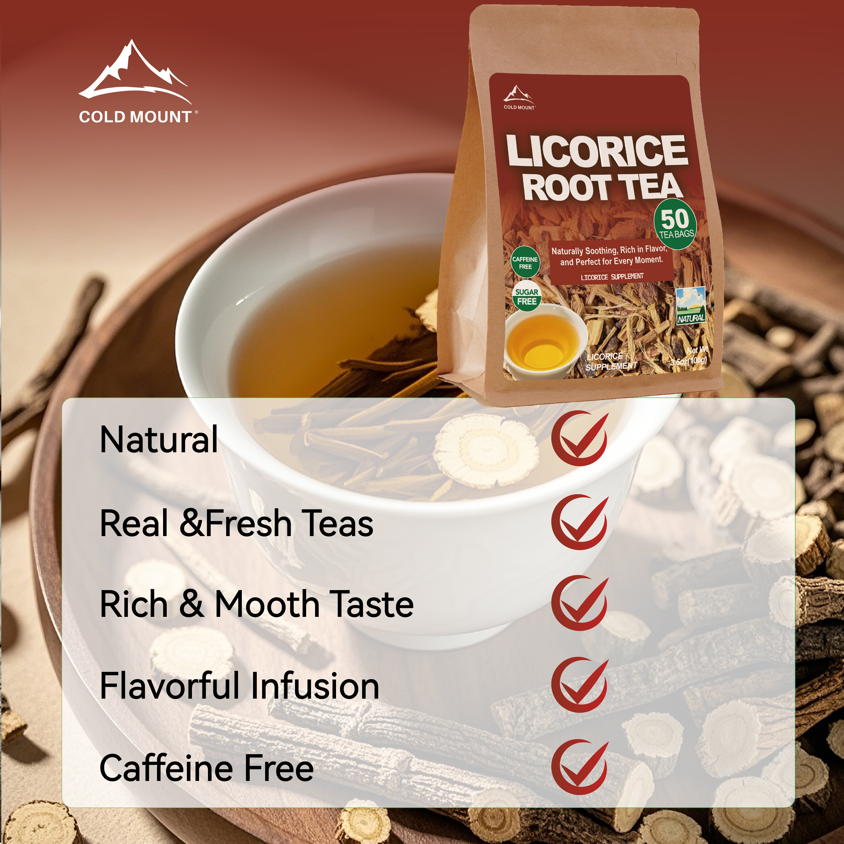 Licorice Root Herbal Tea | Caffeine-Free Tea Bags | 50 Packs